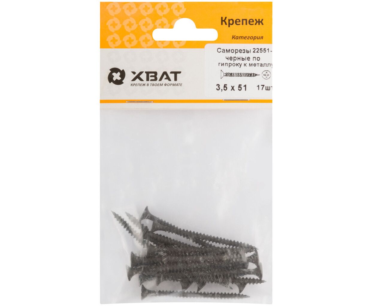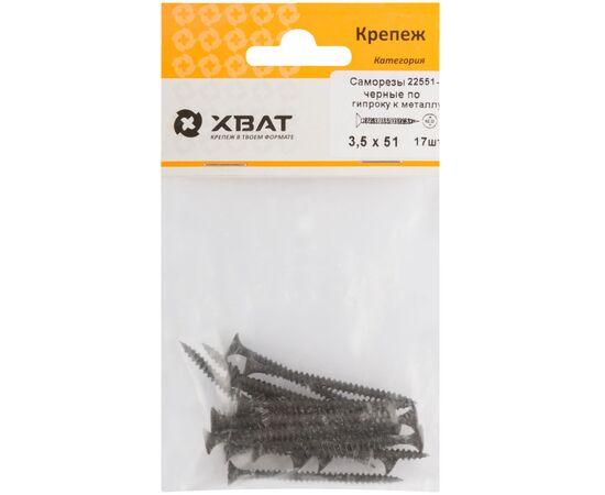 Саморезы по гипроку к металлу 3,5х51 черные (фасовка 17шт)