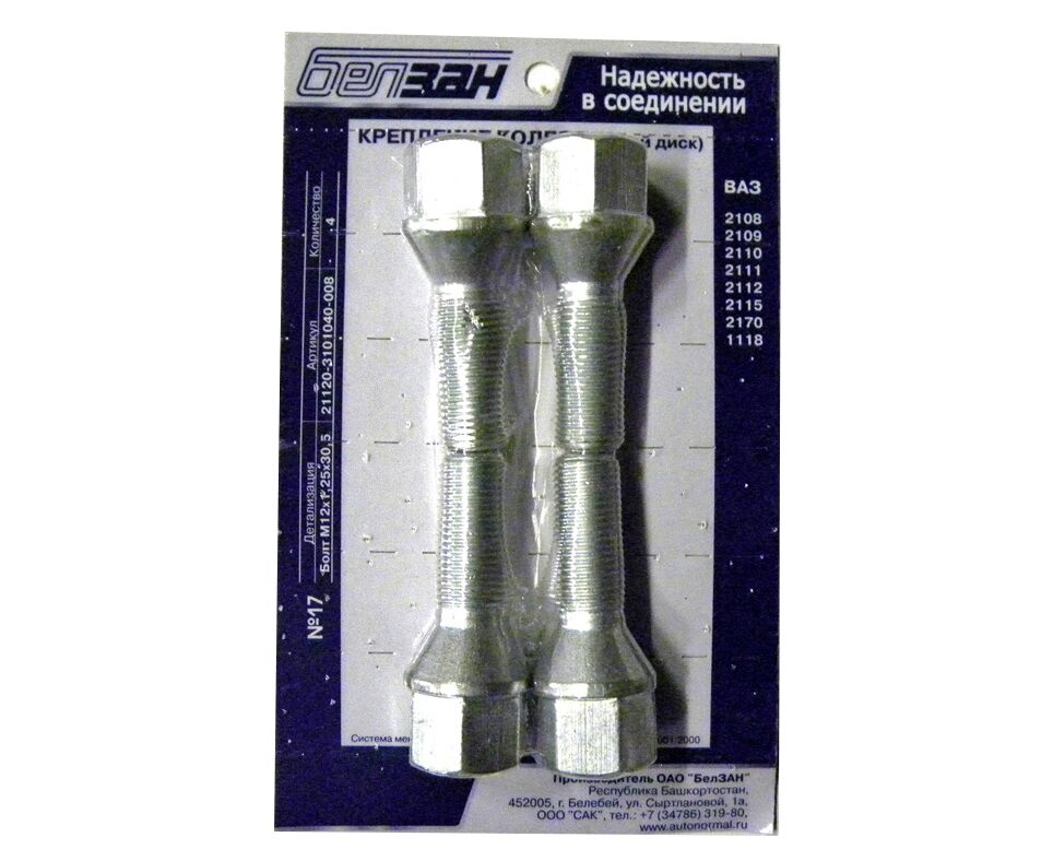 Болт колесный М12х1,25х30 (19кл.) конус (литой диск) ВАЗ-2112 (БелЗАН) (4шт)