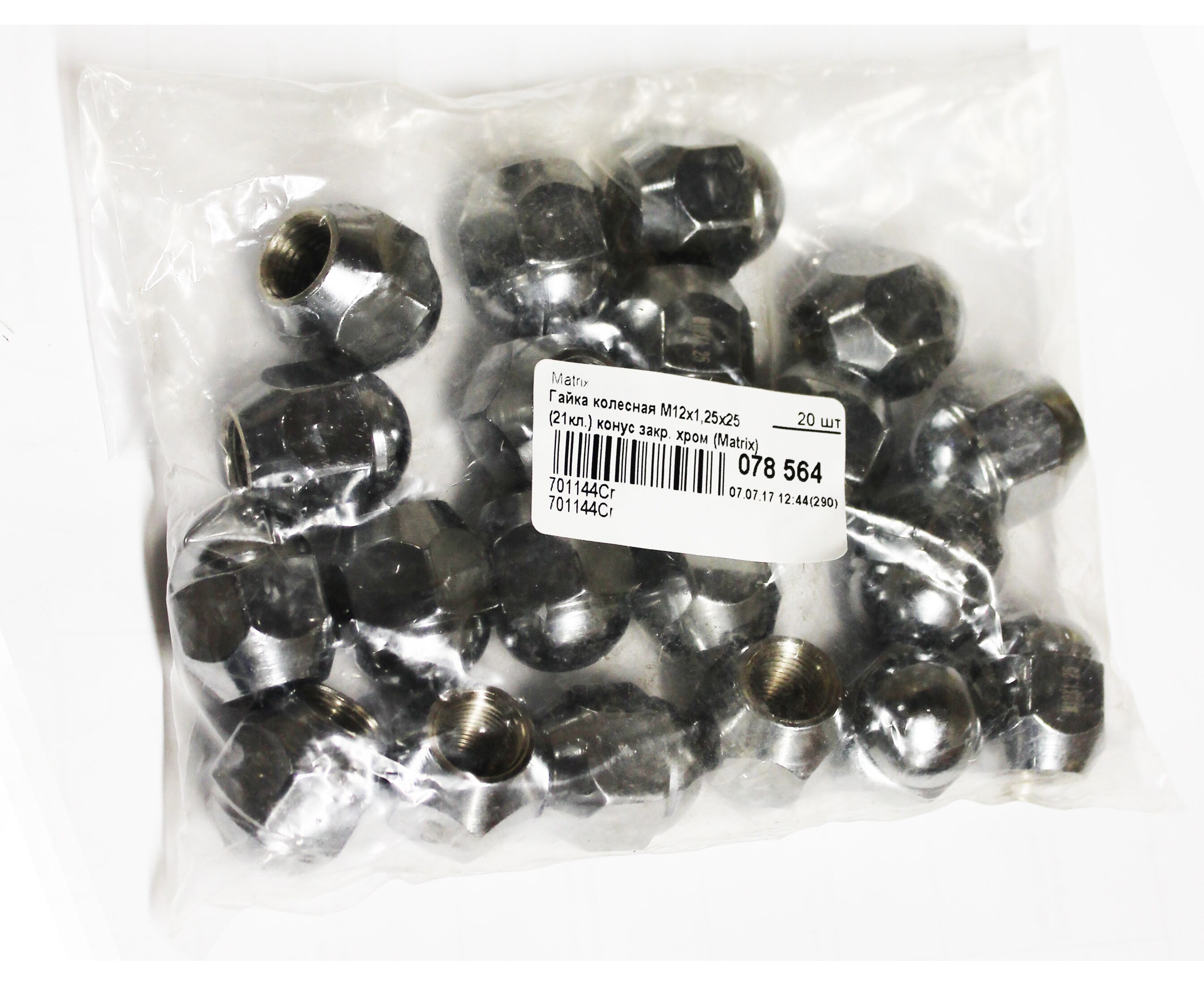 Гайка колесная М12х1,25х25 (21кл.) конус, закрытая хром (Matrix)
