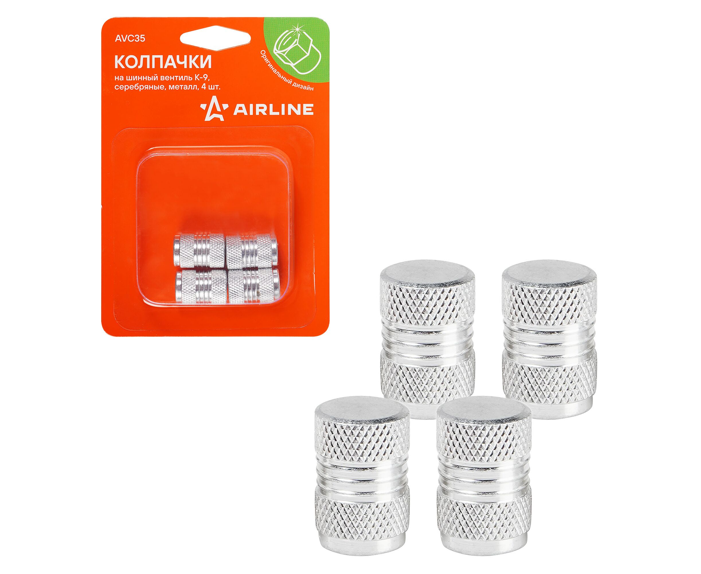 Колпачок золотника K-9 серебряный металл (4шт) (AIRLINE) AVC35