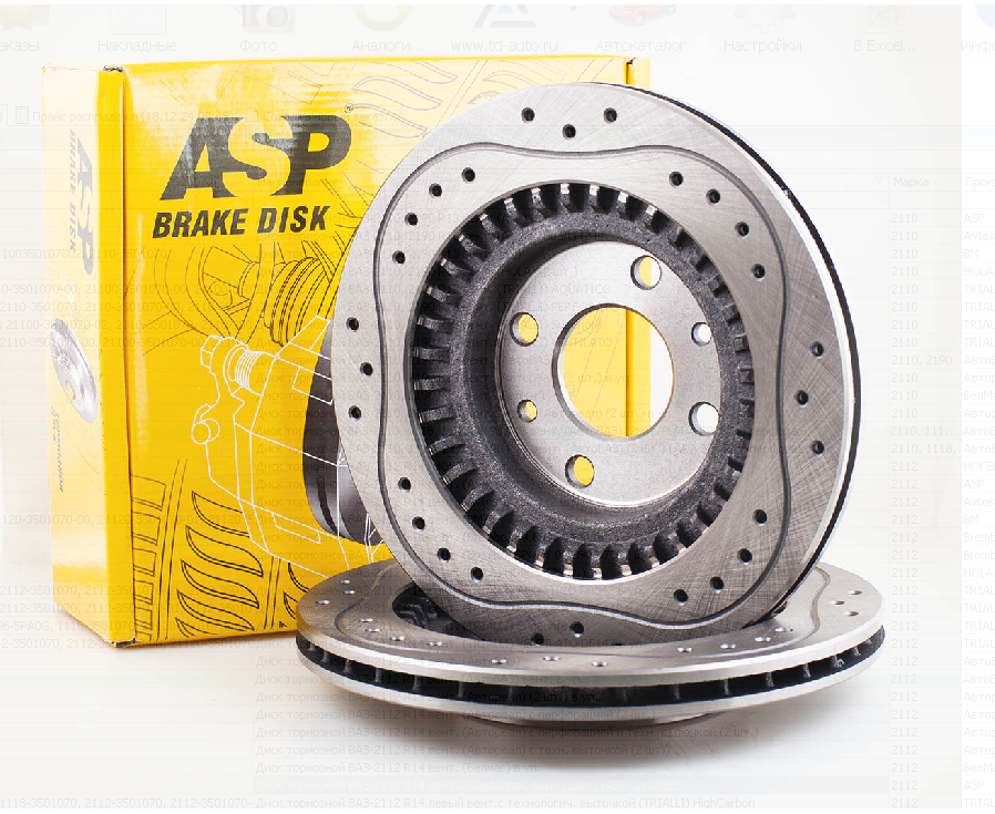 Диск тормозной ВАЗ-2112 R14 вент.с перф. и тех.выт. (ASP) (2шт) в уп.