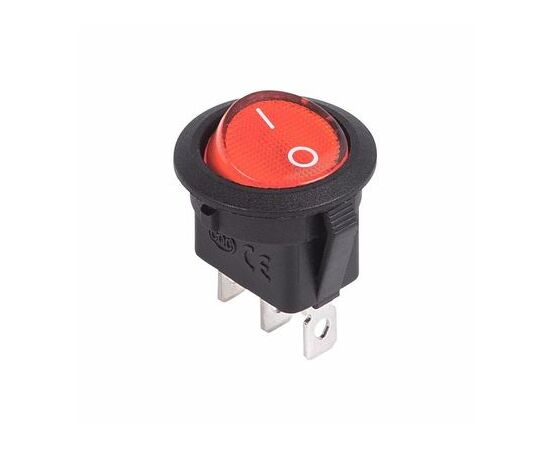 Выключатель клавишный круглый 12V 20А (3с) ON-OFF красный с подсветкой предназначен для коммутации электрических цепей напряжением 12В. Клавишные (Рокерные) выключатели применяются в качестве комплектующих изделий различного электрооборудования (аудио-оборудовании, блоках питания, электроустановках на различных производствах, автомобилях, и многих других местах). Такой клавишный переключатель имеет два положения. Принцип действия основан на перемещении клавиши в одну из позиций. Для переключения в нужное положение требуется приложить некоторые усилия на клавишу. Монтаж осуществляется без применения винтов на плоских панелях толщиной от 0.8мм до 3мм. Подключение контактов осуществляется плоской клеммой, либо с помощью пайки.