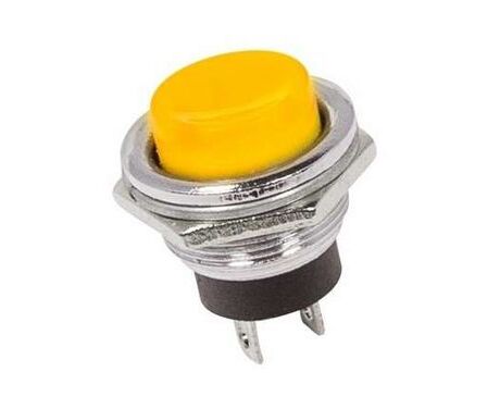 Выключатель-кнопка металл 250V 2А (2с) (ON)-OFF Ø16.2 желтая предназначена для коммутации электрических цепей переменного тока напряжением до 250В путем включения-выключения питающего провода. Кнопки применяются в качестве комплектующих изделий различного электрооборудования (в аудио системах, блоках питания, электроустановках на различных производствах, автомобилях, и многих других местах). Разнообразные цветовые варианты исполнения позволяют эффективно комплектовать панели управления. Изделие состоит из двух основных частей - лицевой части (головки) и контактной, и имеет пружинный возвратный механизм.