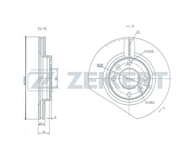 Диск тормозной ВАЗ LADA Largus, RENAULT без ABS вентилируемый 259х20,6 (Zekkert) BS-5107 (1шт)